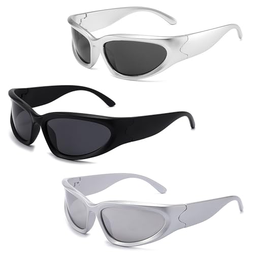 Amllaing 3 Paar Vintage Sonnenbrille für Herren Damen, Y2k Sonnenbrille, Damen Futuristische, Vintage Wrap Around Sunglasses, Radsportbrillen Fahrradbrille Sportbrille
